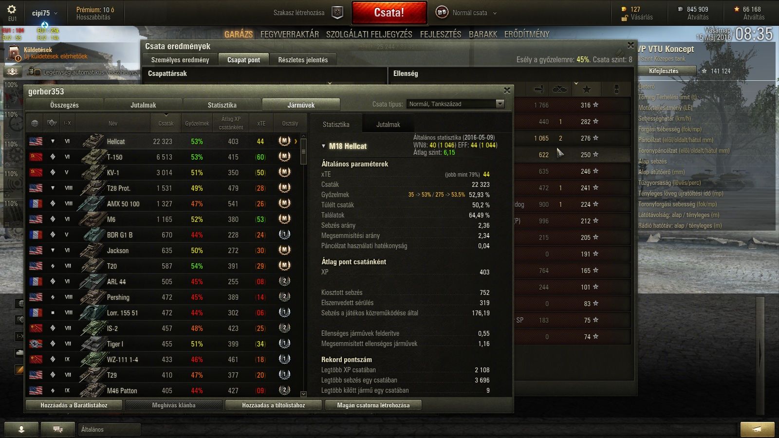 18 428 csata SU-85-tel és 13 663 csata T3 HMC-val, (ami örökölte a T18 stajait), ezt már nem játéknak nevezném, hanem autizmusnak.