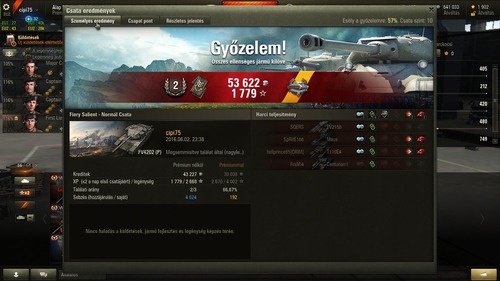 "25 eurót fizettem ezért a Qrva aimpackért, és nem létezik, hogy nem tudlak eltalálni vele, biztos valami szupershildet vettél, mert állandóan leugrik rólad a célkereszt!"Mondjuk, azt nem értem, hogy egy 2k feletti WN8-as emberkének hogy nem tűnik fel, hogy van még egy WTE100-is a bokrában, aki bőszen igyekezett kitúrni.