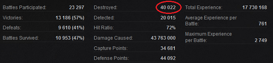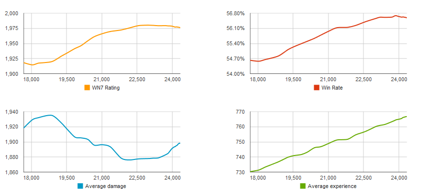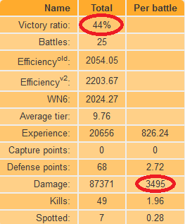 Általában a győzelmi arány és a kilőtt tankok + sebzés azért összefügg . Nagy sebzés + sok kilőtt tankkal még nem láttam 40%-os játékost.