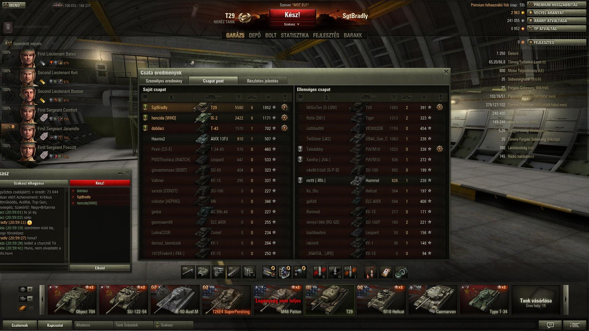 A garázsban már csak azokat tartottam meg amikkel átlagomon felett vagyok, kivéve a T110e5-öt azzal kicsit gyengébben. Hellcattal is 69%-on voltam de azt eladtam mert kellett a kis pénz.