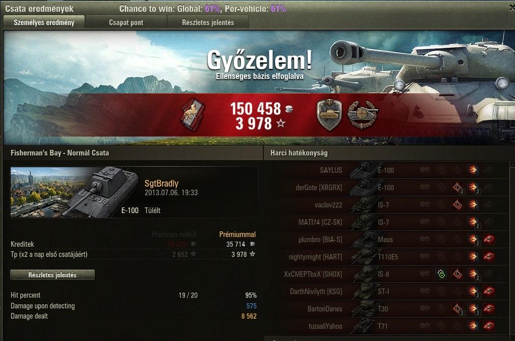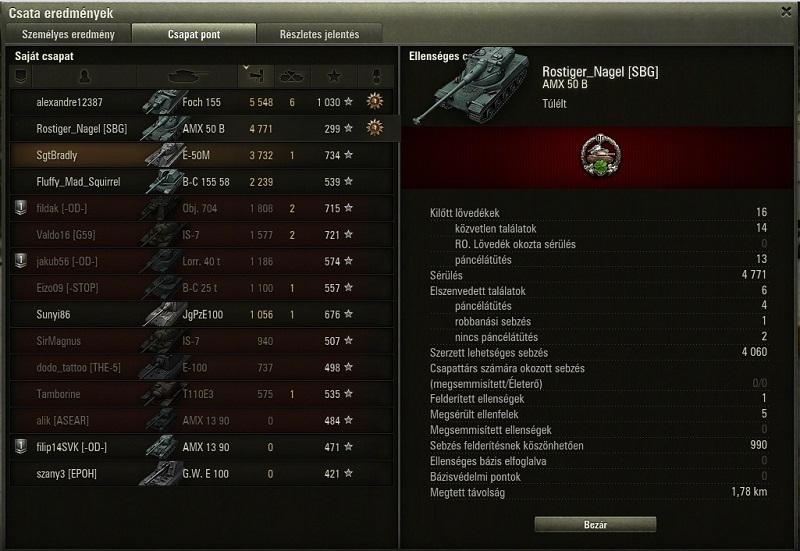 Sikerült lőnöm 8590 sebzést, úgy , hogy igazi veszélybe nem is kerültem, csak a saját E75-ünk tartott fel és jött nekem párszor az elején.