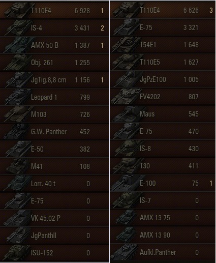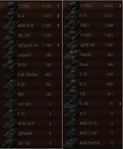 Tegnap csak T110E4-el mentem, pár kört és egész jó értékeket értem el.