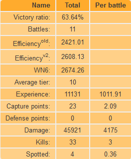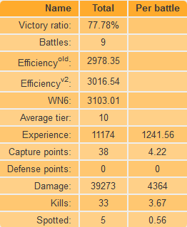 Tegnap nem is foglaltam, nem is védtem az effi nem is lett jó, de a killek és sebzésre a wn6 már jobb eredményt mutat.