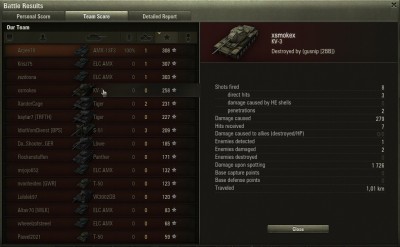 Epic vereség IS-8-al. 7400dmg A végére elfogyott a lőszerem, csak HE maradt. Ezen bukott el a dolog, egy Panther lőtt ki amit normális lőszerrel egylövésezhettem volna. Link