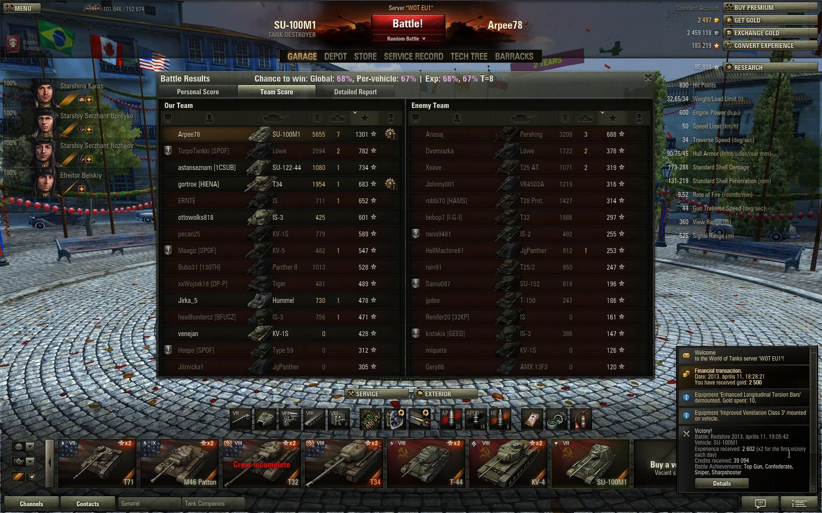Battle Achievements: Radley-Walters's Medal, Pascucci's Medal, Top Gun, Sniper, ReaperStandard acc, 8 kill, 3500+1000dmg, Replay