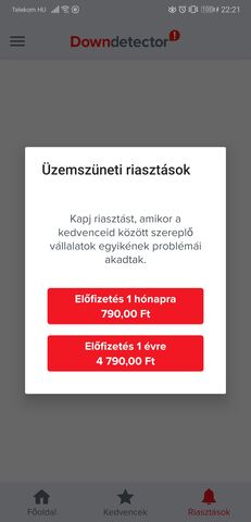 Jó drágán adják a Riasztási értesítés funkciót. -