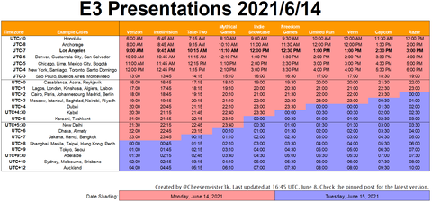 E3 program, ha valaki mentené a naptárba. Természetesen részletek nélkül.