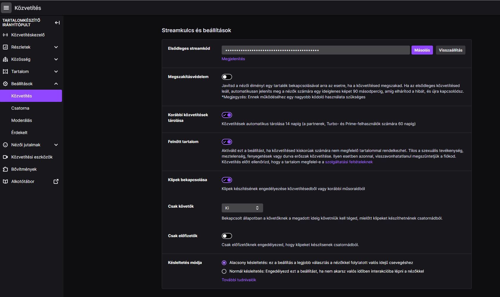 Fel kell menni a Twitch oldalára, bejelentkezni, majd rábökni jobbra fent az ikonodra és ott a tartalomkészítő irányítópultra.