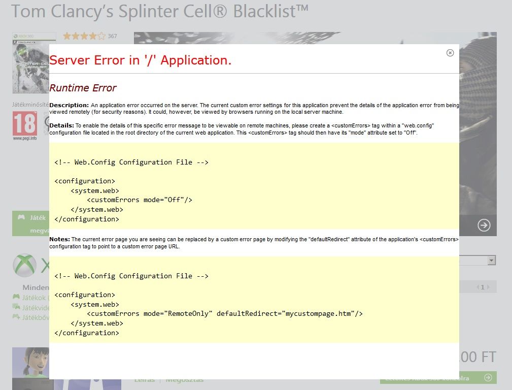 Más is tapasztalt olyan hibát, hogy x360-as játékok esetében játék megvásárlása gombra nyomva feljön egy ablak, forog a zöld karika, majd ez a hibaüzenet jelenik meg: