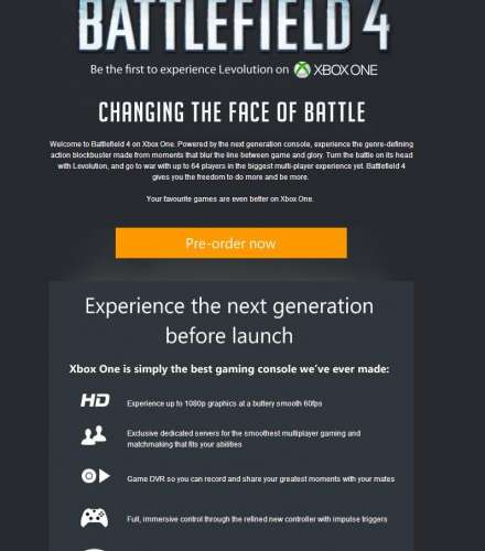 Most kaptam egy emailt microsoft -tól, hogy rendeljem elő a battlefield 4 -et.