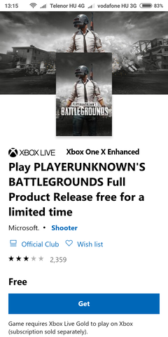 Nos megnéztem az outlook-os profilommal is (ennek még Xbox profilja se volt). Megvettem ezt a Play PLAYERUNKNOWN'S BATTLEGROUNDS Full Product Release free for a limited time elvig csak triál kiadást. Az eddigi $29.99/9900 Ft-os PLAYERUNKNOWN'S BATTLEGROUNDS Full Product Release néven található kiadásnál ezután pedig ugyan-úgy ott van az "Ezt a játékot már megvásárolta." cím, és az is , hogy maximum ajándékba tudnám megvenni. Games with Gold és a hétvégi ingyenes játékoknál mindig is (most is!) ott a kiírás: Az Xbox Live Gold használatával játszhat a játékkal, vagy megvásárolhatja azt.