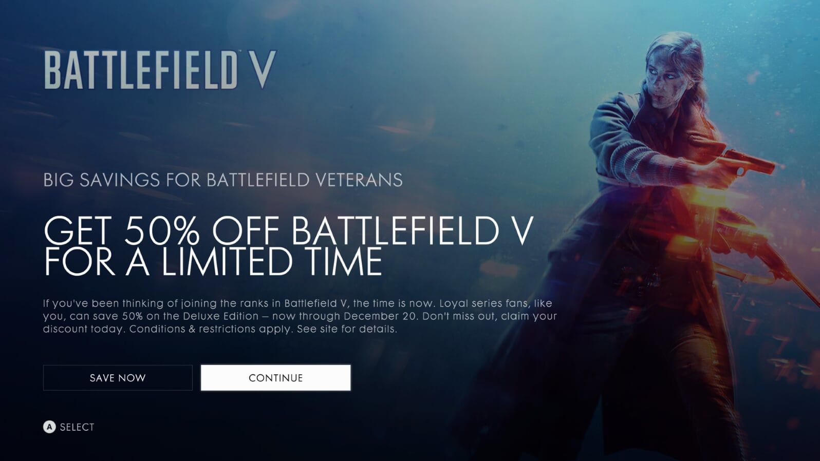 Csak azoknak megy 50% -al akik megvették anno a bf4 -et és a bf1 -et. Vagyis bf rajongó.
