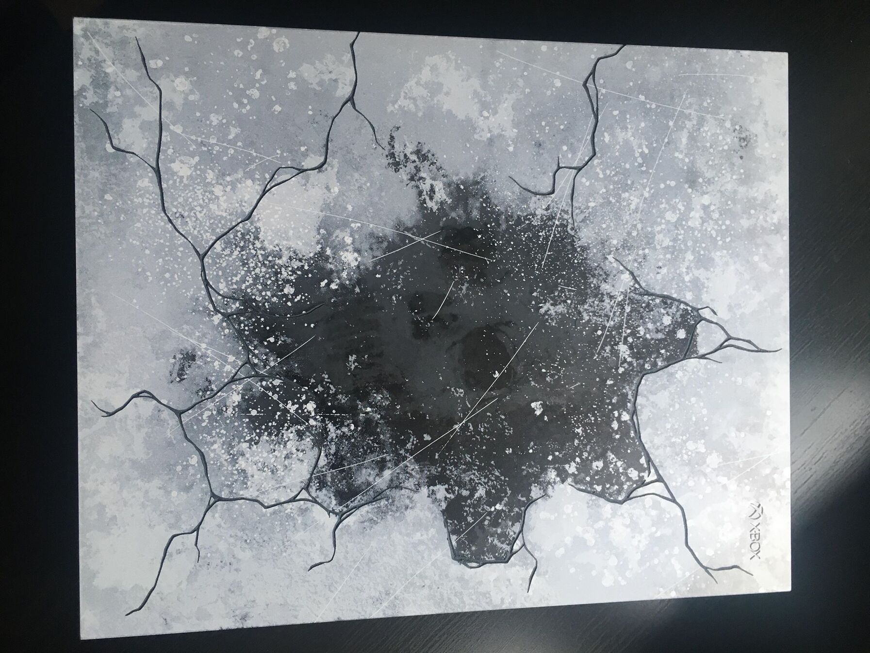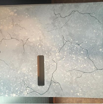 A felületének nagy százalékán a felső részen festett, de középen alulról van a koponya ráfestve és pontosan ahogy mondod, pont olyan mintha valóban a "jég" alatt lenne. Szerintem nagyon jól eltalált. Ráadásul a repedések gravírozva vannak, így még jobb a tapintása.