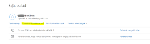 4. Ha a fentiek megvannak, akkor az MS Család oldalán akár böngészőből is lehet ezt állítani: [link]szerk: ha anno úgy lett létrehozva a gyerek fiókja, hogy PC-n az MS család menüpontja alatt be is van elád regisztrálva gyerekként, akkor lehet elég csak ott állítani, de én úgy tudom, hogy csak úgy lehetsz felügyeleti "szerv", ha az Xbox One-on is te vagy a fő profil.