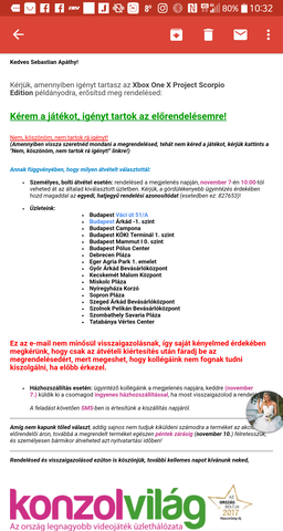 2 helyről , MM és Konzolvilágból is előrendeltem az x et , mikor tudom meg h kapok e belőle ? Nov 7. Én csak vagy kapok egy mailt ? -
