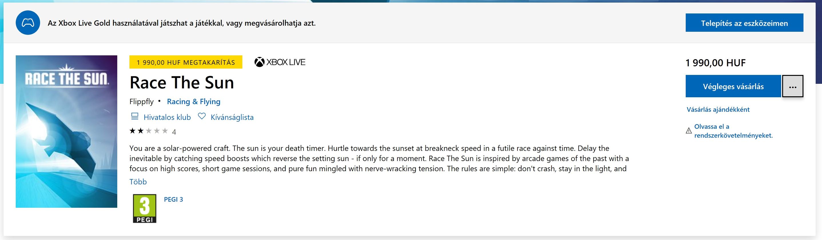 Valakinek ezt a Race The Sun-t sikerült már ingyen behúznia?