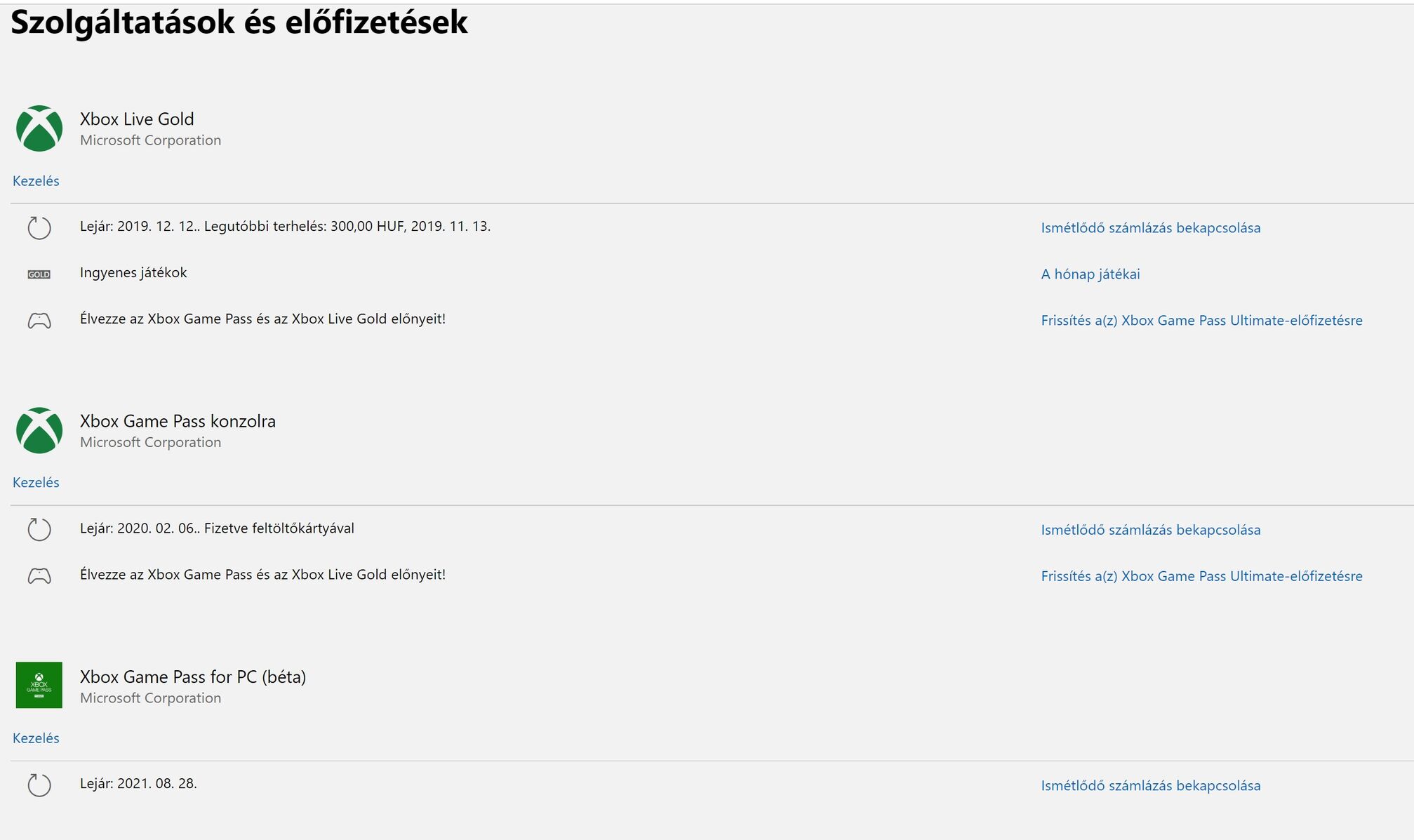 Jelenleg így állnak az előfizetéseim MS-nél.