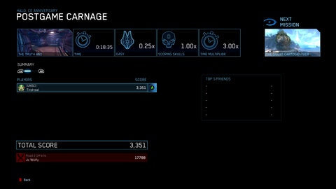 Halo pályát a CE-ben most csináltam meg Legendaryn 30 perc 19 másodperc alatt és az idő miatt kaptam 1.97 szorzót amit hozzá is adott a végső ponthoz, de a Legendary 4x szorzót nem adta hozzá, így nem lett meg 12000 pont