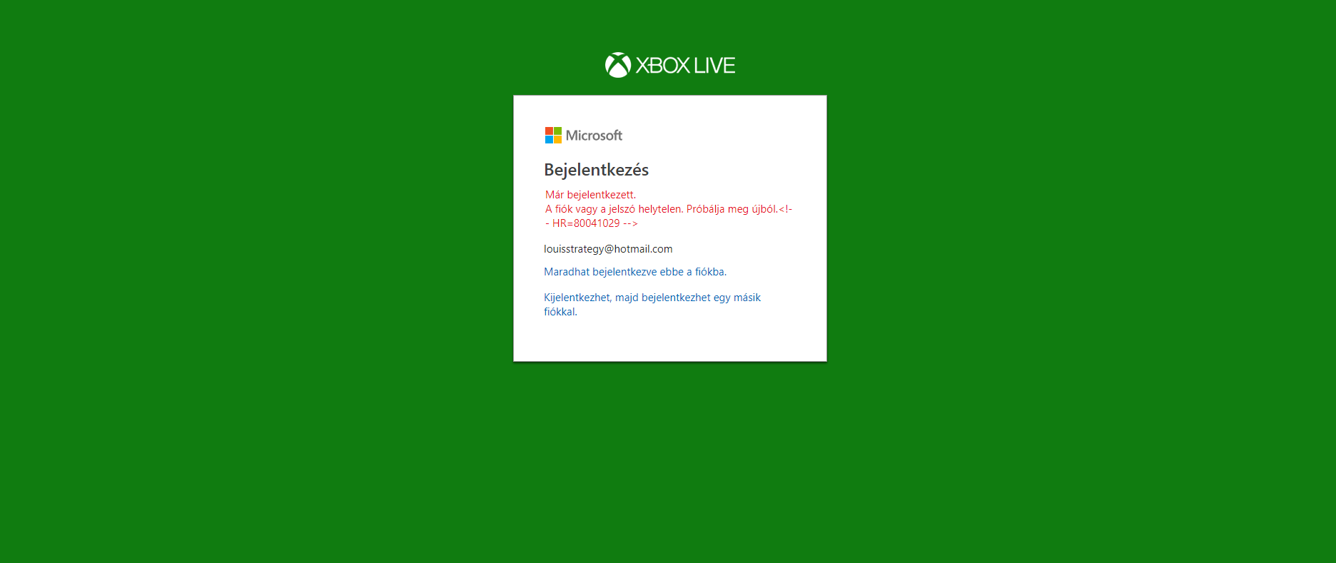 Szeretnék regisztrálni egy Microsoft-fiókot interneten keresztül, de folyton azt írja, hogy "Újrapróbálkozás később