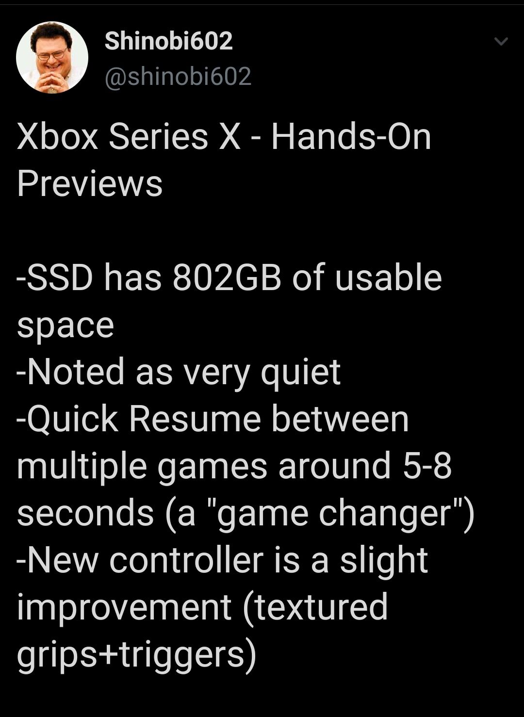 "Switched back to an older X1X briefly during testing, & it was like going from cable internet back to the days of a 56k modem. That’s how much the XSX improves the games you already play every day. Everything just feels better."