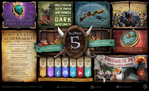 "Celebrate five years since Sea of Thieves' launch with this special edition of the game, which includes a copy of Sea of Thieves itself with all permanent content added since launch, plus a 10,000 gold bonus and a selection of Hunter cosmetics. The Hunter Cutlass, Pistol, Compass, Hat, Jacket and Sails will ensure you cut a formidable figure as you set sail for adventure!"