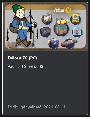 Srácok, újra megjelent a Fallout 76 csomag az Előnyök között. (???