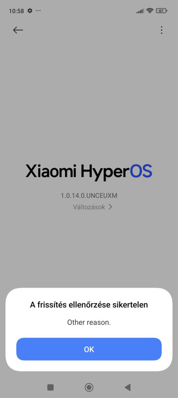 Mégis a következő hibát kapom a frissítés ellenőrzése során