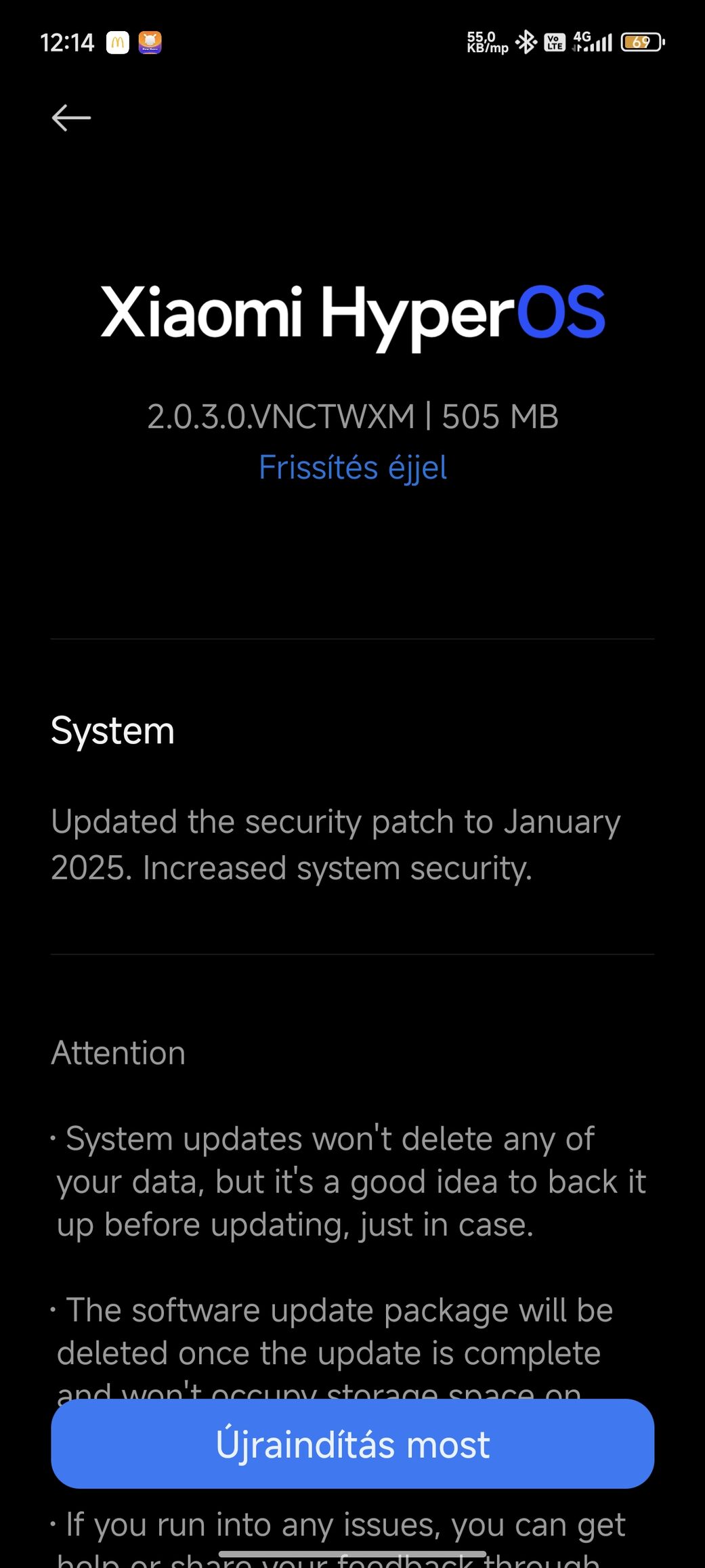 Próbáljátok meg letölteni innen a legfrissebb hivatalos és publikus HyperOS 2.0.107.0.VNCEUXM EU/EEA ROM-ot és frissíteni updater-ből: [link]