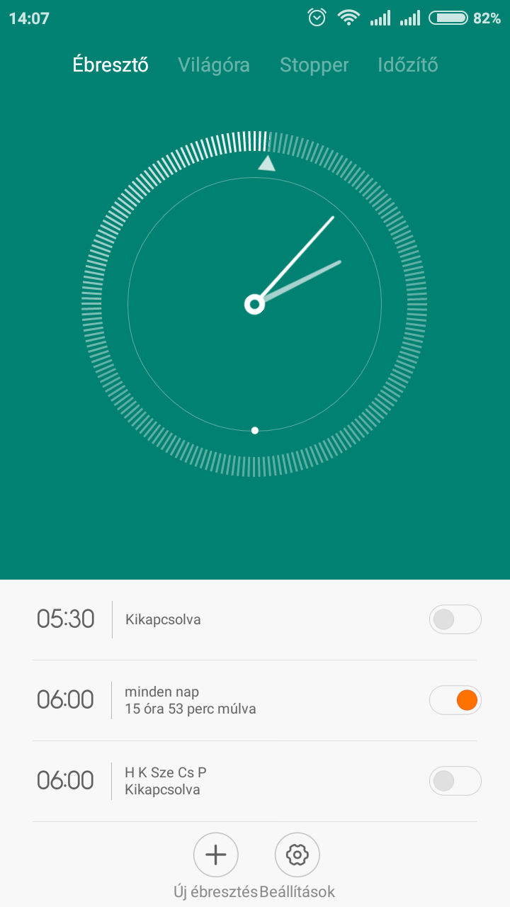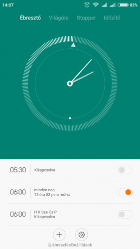 Ébresztő, gyári alkalmazás, jelenleg napi ébresztőre állítva, de több napi, vagy csak egy napi beállításkor is teszi a dolgát.