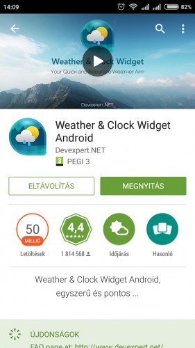 A következő widget-t használom, ami ugye óra, és időjárás is egyben. Tehát indítópultba betéve. Az óra mindig frissül, nem csak képernyő élesztéskor (olvastam ilyen jellegű hibát is, hogy az óra nem frissül).