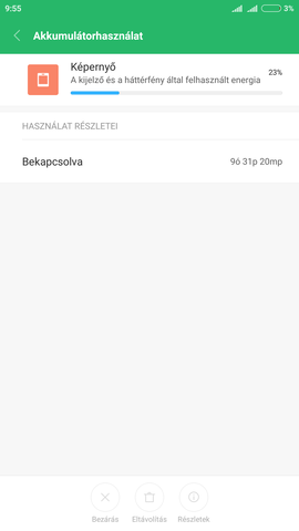 Egy kérdés. Az SOT azaz a bekapcsolt képernyő idő azt az akkumulátor használat hardver képernyőnél látom, hogy bekapcsolva, írja?