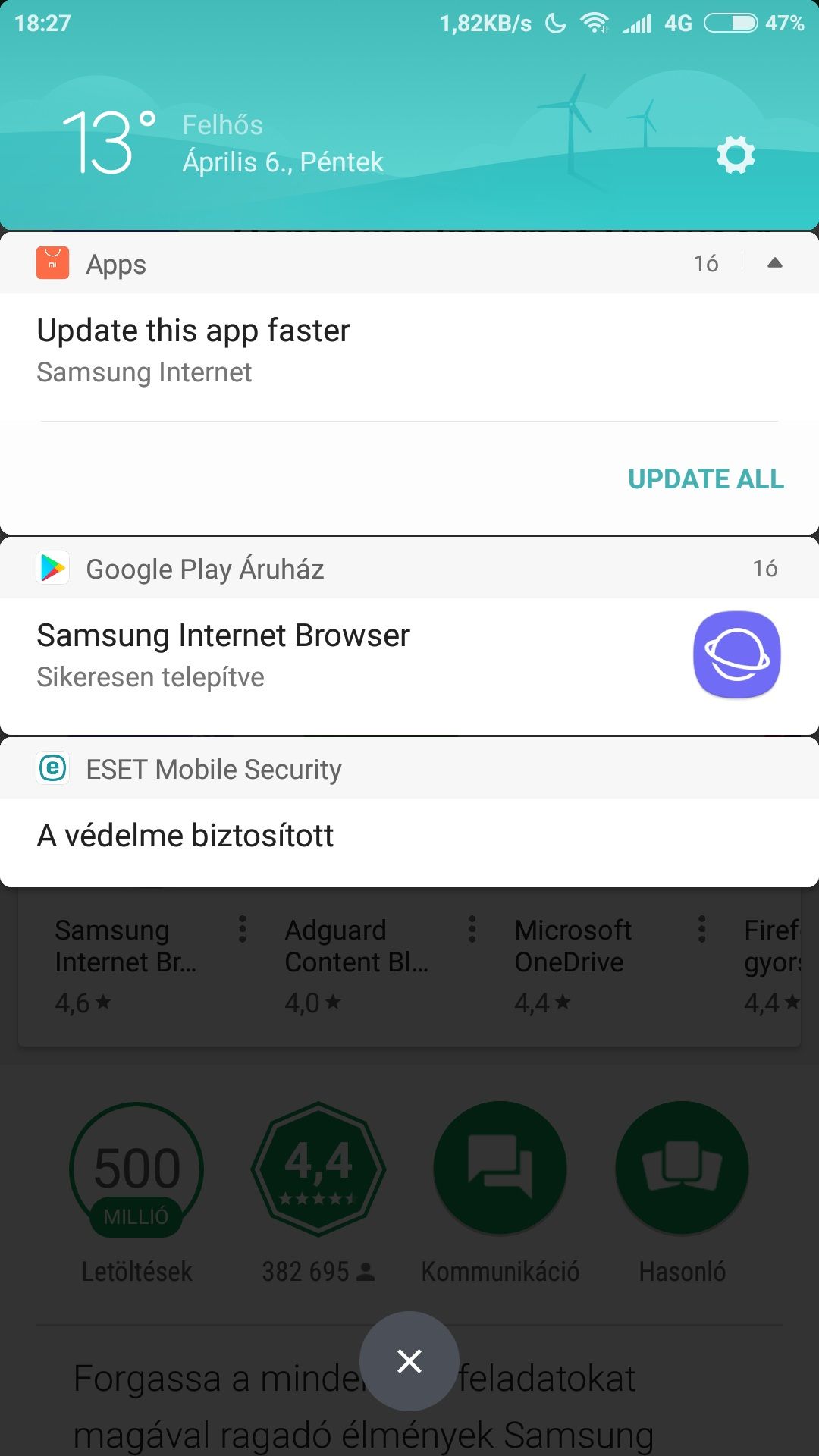 1 éve van meg lassan a telefonom, 4/64-es, 95%-ban elégedett is vagyok vele, ám ez a MI Apps nevezetű borzalom kezd kiborítani. Arról már sikerült leszoktatni, hogy önállósítva magát frissítse az appokat. De azzal nem tudok mit kezdeni, hogy szinte naponta ajánl valami játékot, "hasznos" appot. Legutóbbi okossága, hogy a legutóbb telepített alkalmazást akarja frissíteni. Például most raktam fel a Play Storeból (mellékelt kép) egy böngészőt, de a MI Apps talál frissebbet, ami azért érdekes, mert a Play Store szerint friss az app..