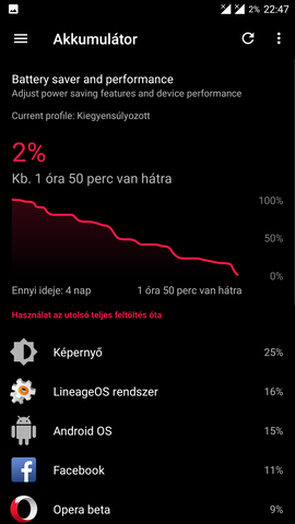 (Crdroid 3.8.5. gyári kernellel pár mókolással, 3-4 nap készenlét, 2 sim kártya, kikakapcsolt képernyő mellett nincs engedélyezve adatkapcsolat. 24 óra bluetooth mibanddal, 4-5 óra mobilnet utazás alatt, a többi otthon wifivel. Kevés telefonálás, játék semmi, böngészés, írogatás)Eddig 3g kártyát használtam, eddig kb 10-11,5 óra sot volt a jellemző, merülés készenlétben (tehát nincs adatkapcsolat engedve) 1-2-3% / éjjel.