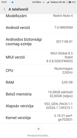 MIUI verzió: MIUI Global 9.5 I Stabil 9.5.4.0(NCFMIFA) -