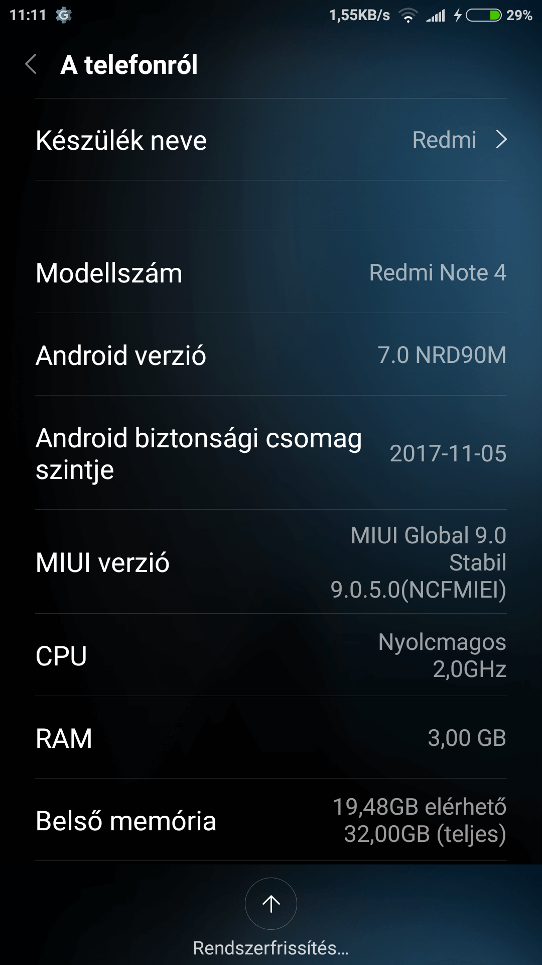 Mi a fene történt a frissítéssel?(V9.0.3.0.NCFMIEI) Jelezte a teló, hogy van frissítés és rányomtam és eltűnt. Most azt írja, hogy Nincs elérhető frissítés.