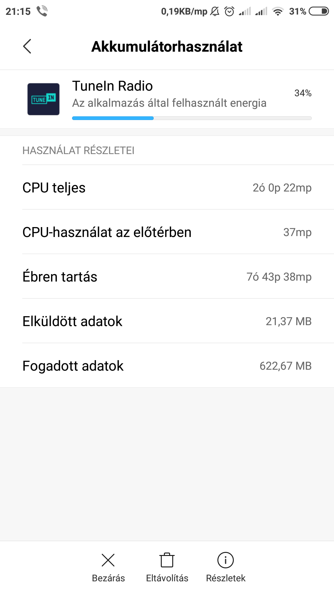 Az ébren tartás úgy rémlik korábban is pont ilyen volt, amikor az alkalmazás aktív, tehát szól a zene, akkor a telefon ébren volt.Ez a TuneIn mai statisztkiája, jól látszik, hogy egész nap ébren tartotta a telefont.A "CPU teljes" mondjuk nekem semmit nem mond, az is lehet , hogy több mint 2 órán keresztül maximumon pörgette a processzort? Melegedést egyáltalán nem éreztem.
