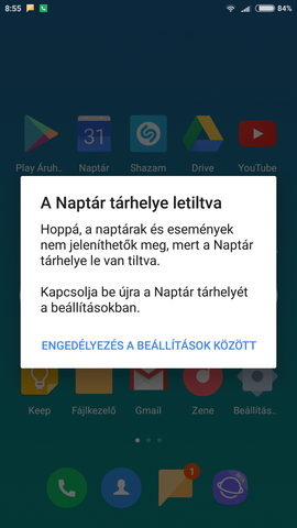 Itt pontosan mit is kellene bekapcsolnom? A google naptár indításánál csinálja. Ha a "linkre" megyek, akkor ugyan ezt az üzenetet dobja. Letöröltem a gyári Xiaomi naptárat, amolyan minek legyen 2 naptár app alapon, gondolom az kavar be.