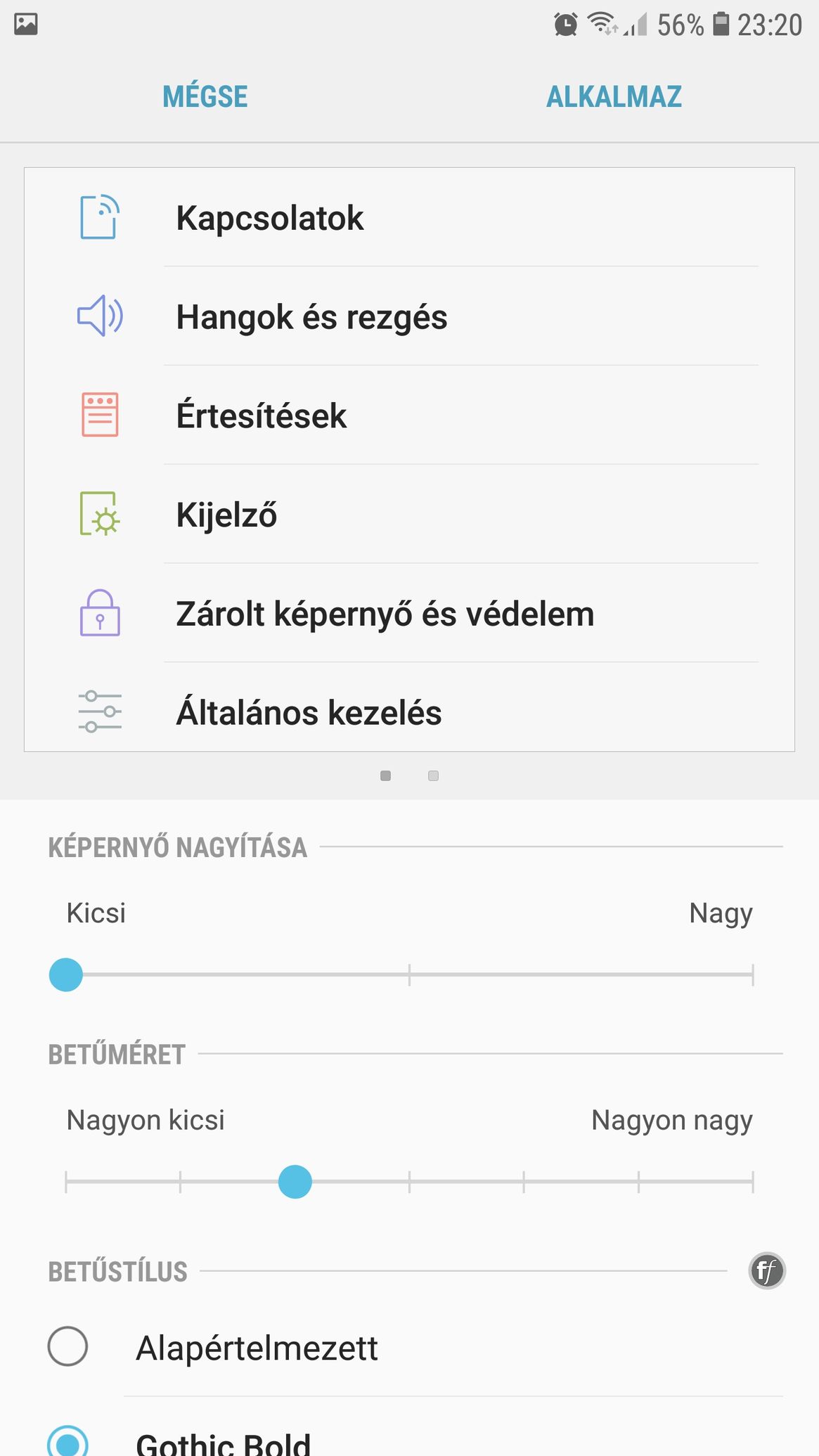 Nos, az én samus androidomon betudok állítani olyat, a "Beállítások - Kijelző - Betűtípus és képernyőnagyítás"