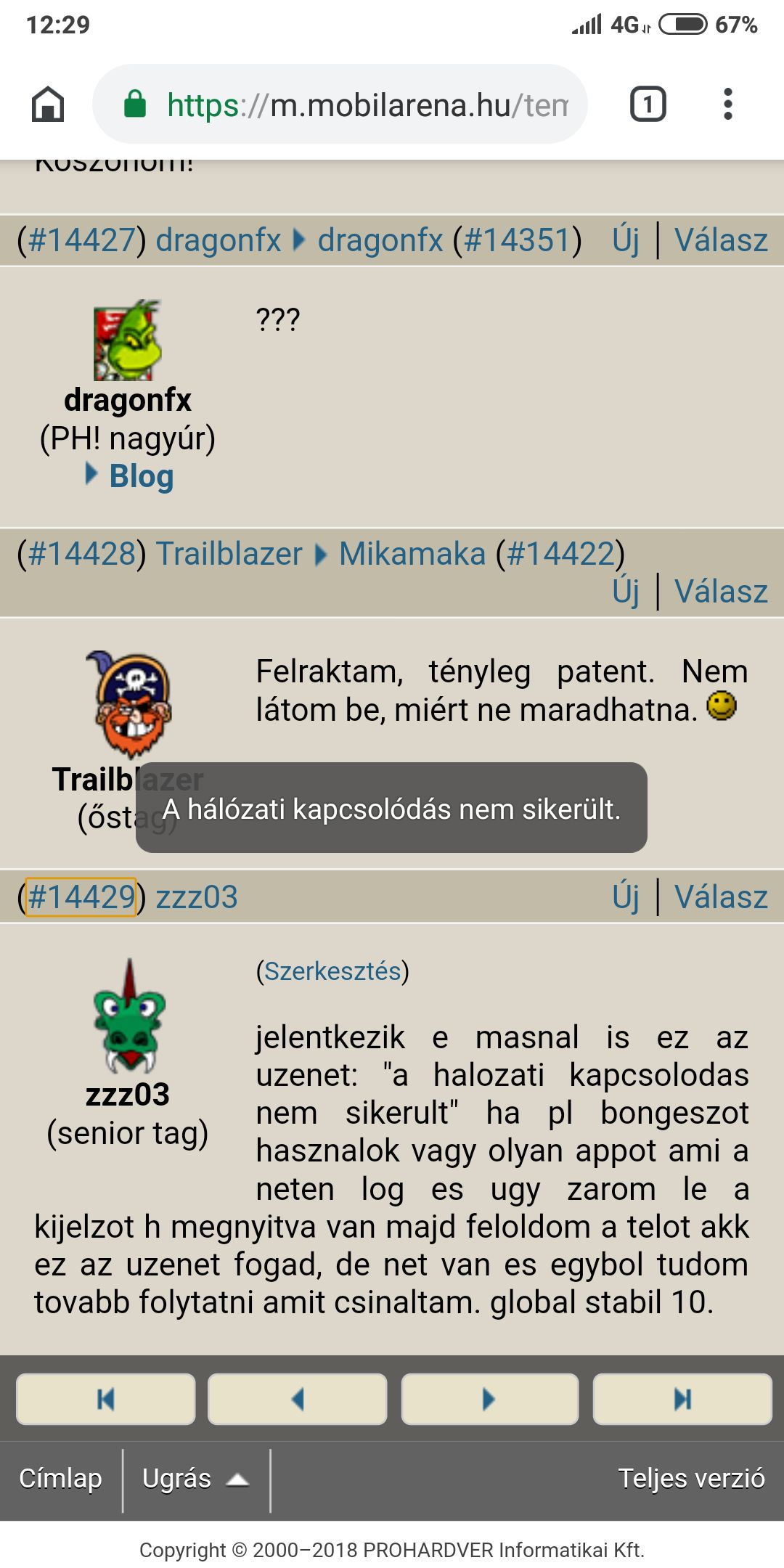 jelentkezik e masnal is ez az uzenet: "a halozati kapcsolodas nem sikerult" ha pl bongeszot hasznalok vagy olyan appot ami a neten log es ugy zarom le a kijelzot h megnyitva van majd feloldom a telot akk ez az uzenet fogad, de net van es egybol tudom tovabb folytatni amit csinaltam. global stabil 10.