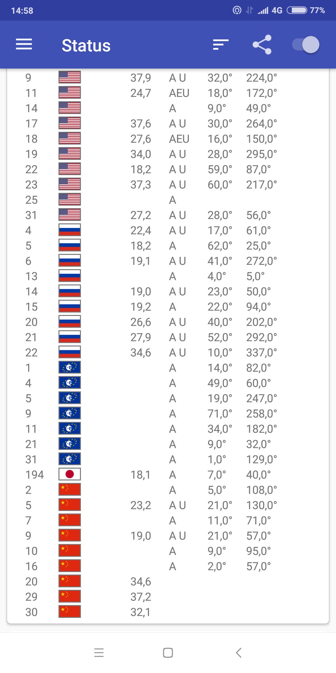 Köszönöm . Ismerem ezt a prg-t is , fennt is van a telefonomon . Amúgy amiről a képernyőmentést csináltam , az a legjobb . Ott is jelölve van melyik műholdat használja stb ... De a gondom nem ez , műholdakhoz nem vagyok hülye .... évek óta màniám ... A munkámat is érinti ... . De ha már itt tartunk , neked az általad ajánlott program mutatja a kínai ( ha jól emlékszem ott
