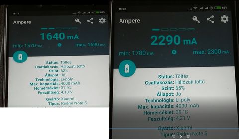 Megérkezett a telóhoz a Qualcoom3.0 töltő!Nem tudom de jó adatokat produkál az ampermérőn!De remélem van hozzáértő és elmondja miben jobb a +500-600ma !