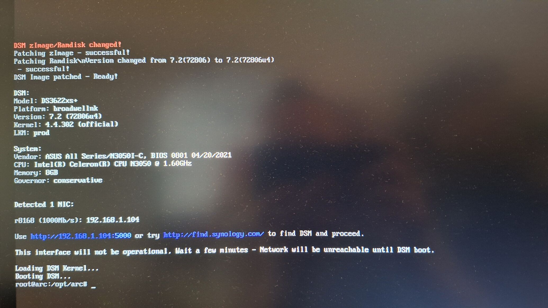 DSM 7.1.1-42962 Update 1-ről lehet frissíteni? Azt hiszem ARPL loaderem van. Ki lehet deríteni valahogy monitor nélkül?