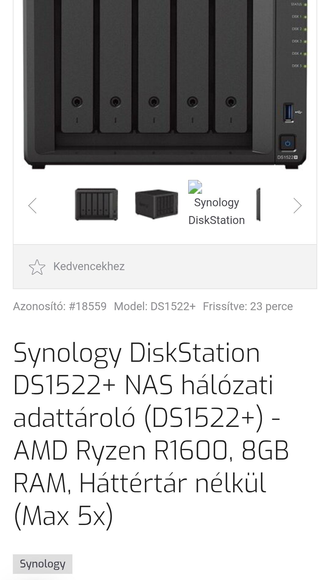 A Synology version pedig DS3622xs+ lett. (itt Cores = 6)