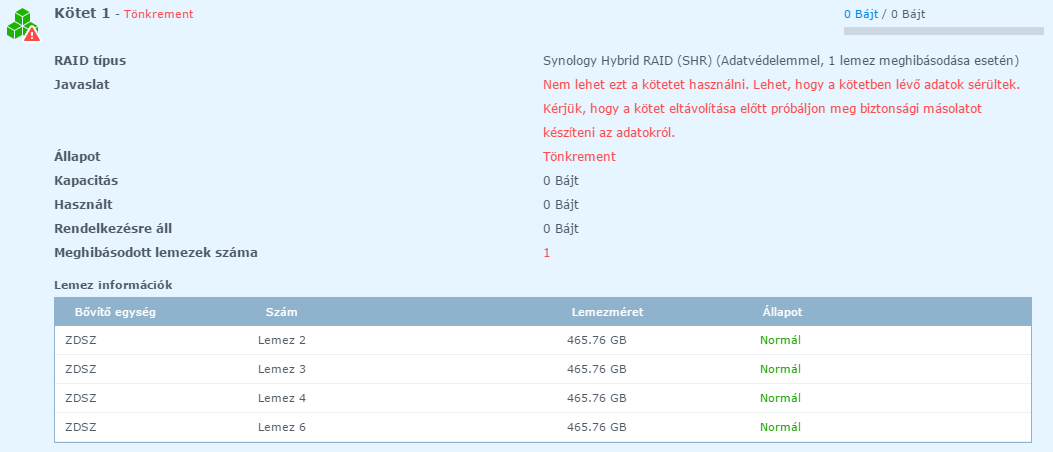 Ahogy a képeken látszik, a DSM szerint azokkal nincs gond. Lelkileg rákészülök az Ububntu-s kísérletre, amit klambi topiktárs is linkelt. Egy DS216+ esetében már sikerrel alkalmaztam mentésre korábban, de az csak két lemez és tükör volt, ez egy kicsit más. Nem hiszem el, hogy most ez is megadta magát nekem. Szétcs.sz az ideg.