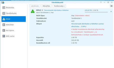 Most épp a 4 TB-s lemez inicializálása folyik, el tart majd egy darabig, de egy vadi új lemeznél ami még nem volt használva, jobb a békesség, fusson csak végig az ellenőrzés.