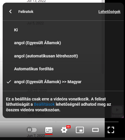 A funkció egyébként ott van a fogaskeréknél "felíratok" Zenei tartalomnál ritka de amúgy a legtöbb videónál van "automatikusan létrehozott" angol felírat, jóbb esetben külön normális angol is, ha van akkor mindig a rendest kell választani, utána pedig alatta a fordítást és ott kikeresni a magyart, és már jó is, most néztem ez a út jelenleg is működik, (A képen ez van) sima videóknál ami nem zene nekem teljesen megfelel.