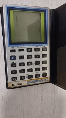 Van még egy Casio játékos számológépem, de nem nagyon működnek a gombjai, és most elem sincs benne. Ennek még hangja is volt. -