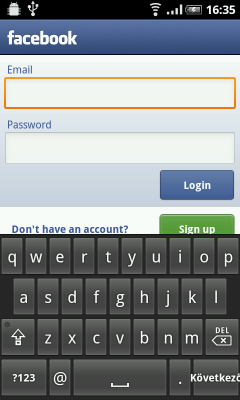 Facebook bejelentkezésnél a Következő felirat a billentyűzet gombjáról lelóg, elég lenne annyi hogy Köv.:
