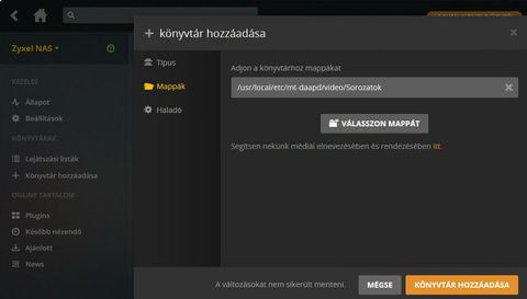 Amennyiben sikerül valahogy előcsalnom a menüt ahol látom, hogy fut a szerver van neve is, de könyvtárat már nem tudok hozzáadni. Kitallózom, de a változásokat nem menti el. így elméletileg fut, megtalálom a médiaeszközök között, de nincs lejátszható adat.Valami további ötlet?