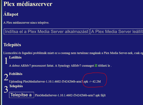 Szeretnék Plex media szervert telepíteni- Letöltöttem a MetaRepository_20161021_arm_014.zpkg, és a ZYPKG_INFO.tgz fájlt. Állítólag benne van. Bemásoltam a \\<NAS>\admin\zy-pkgs\.könyvtárba. Frissítettem az applikációkat, a leírtak szerint "Then in the package menu press on the 'Retreive List From Internet' button. (On firmware 5.20+ this is the 'Cycle icon' in 'App Center->Browse->All Apps')" és nem történt semmi változás a listában. Reboot is volt. Firmware Version: V5.21(AAZF.1)